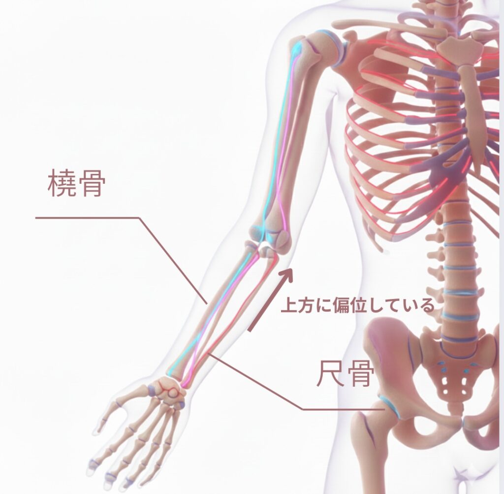 前回施術した上部胸椎の状態を見ると、まだ硬さが取りきれていないのと、尺骨(前腕の骨)の偏位がありましたので、その部分の調整を行い2回目施術を終了としました。